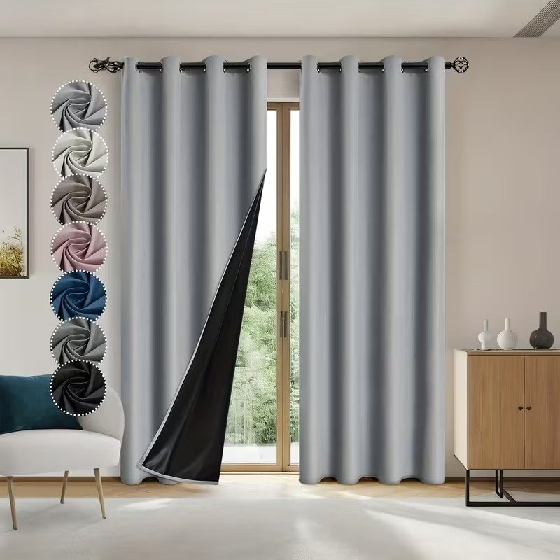 Gray Blackout Curtains designed to block light, reduce noise, and maintain indoor warmth. Made from 100% polyester with a modern rod pocket grommet top, these lightweight curtains are perfect for bedrooms, living rooms, and door panels in all seasons.
