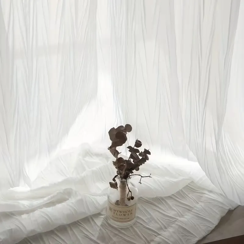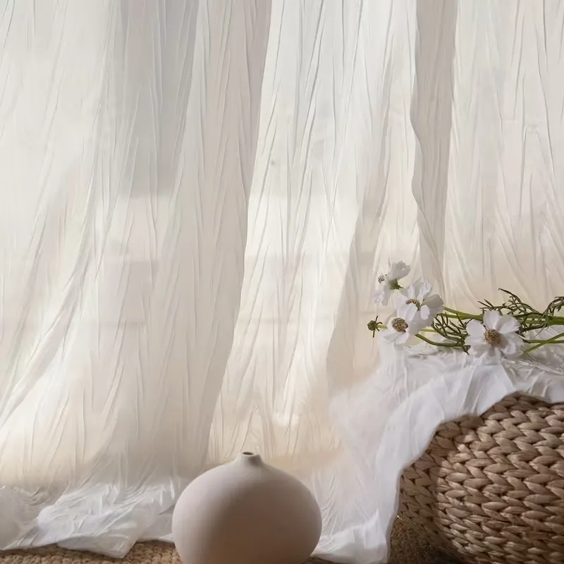 Elegant velvet sheer curtain made from 100% polyester with light-filtering opacity. Features a tailored pleat top for easy rod pocket hanging. Ideal for living room, bedroom, or patio doors, adding soft texture and contemporary décor to any interior.